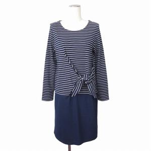 エル ELLE ワンピース ドッキング タイト ひざ丈 ボーダー 38 紺 ネイビー レディース