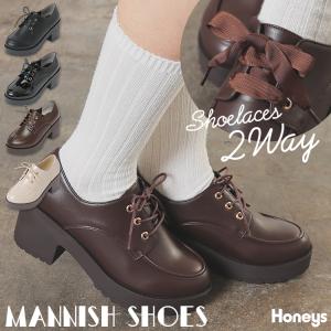 靴 シューズ マニッシュシューズ レースアップシューズ オックスフォードシューズ レディース Honeys ハニーズ 厚底ヒールマニッシュ