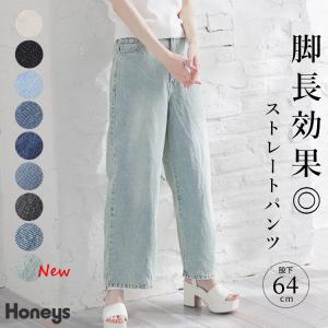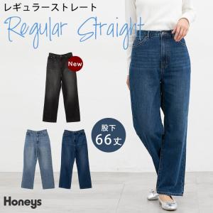ボトムス パンツ デニム ストレートパンツ ロングパンツ デニムパンツ 股下66cm 綿混 レディース Honeys ハニーズ レギュラーストレート(股下66cm)