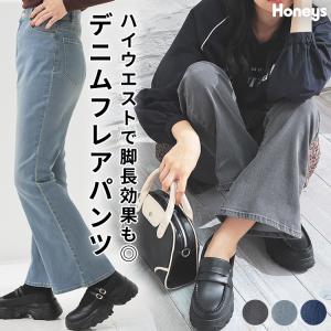 ボトムス パンツ デニム デニムパンツ フレアパンツ ストレッチ 綿混 レスウォーター デニム素材 レディース Honeys ハニーズ デニムフレアパンツ