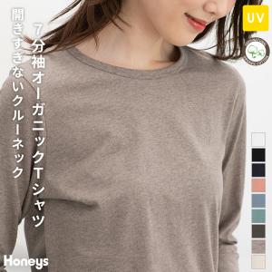 トップス Tシャツ カットソー オーガニックTシャツ オーガニックコットン UVカ Honeys ハニーズ 7分袖オーガニックT