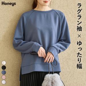 トップス スウェット 長袖 ゆったり クルーネック 無地 スリット シンプル レディース SALE Honeys ハニーズ ラグランゆるトップス
