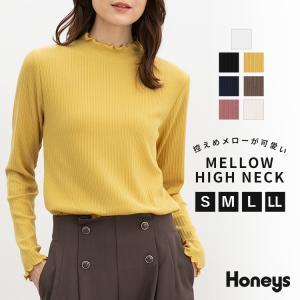 トップス Tシャツ ロンT 長袖Tシャツ カットソー 長袖 ハイネック メロー ストレッチ ジャカード レディース Honeys ハニーズ メローハイネックT