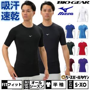 野球 アンダーシャツ 半袖 丸首 フィット ミズノ バイオギア 吸汗速乾 UPF15 ストレッチ 学生野球対応 12JA1C31 野球ウェア アンダーシャツ名入れ有料可(U)