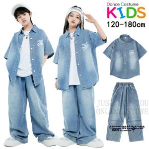 デニムスーツ 半袖 ブルー キッズ ダンス衣装 セットアップ 上下セット ステージ衣装 韓国 k-pop おしゃれ 女の子 男の子 子供 かっこいい かわいい ゆったり デ