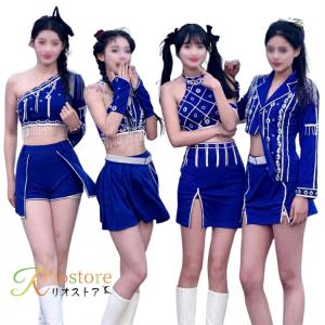 韓国 アイドル 衣装 ダンス衣装 k-pop 青 セットアップ レディース へそ出し スカート 短パン jazz ステージ衣装 サファイアブルー DSダンス HIPHOP 演出服 バー