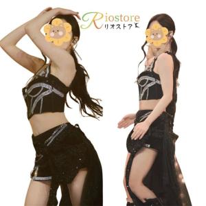 黒 韓国 ダンス衣装 レディース セットアップ k-pop衣装 ステージ衣装 韓国 アイドル衣装 ブラック 片袖 へそ出し トップス スカート ジャズダンス 演出服 大人