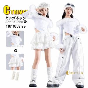 k-pop 衣装 白 キッズダンス衣装 セットアップ ヒップホップ へそ出し トップス 女の子 オフショルダー ふわふわ カーゴパンツ k-pop 韓国 アイドル 衣装 短パン