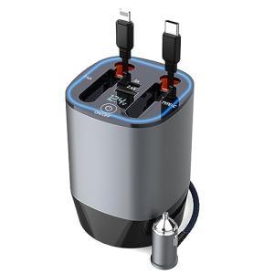 ZUKDA 車の充電器 急速充電 シガーライタースプリッター 80M延長ケーブル 電圧検出 デジタル表示機能 1V/4V 100Wシガーライター