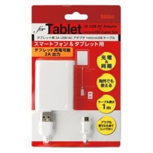 タブレット用2A USB/ACアダプタ+microUSBケーブルBM-USB2ASET/WH