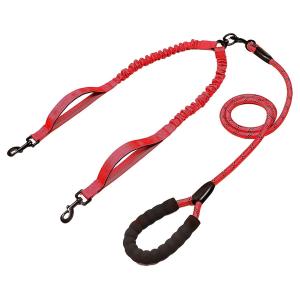 ENN LLC 2匹の犬のリード 2頭引きリード ツインリード 2匹 ダブルリード クッションコード 負担軽減 (レッド)