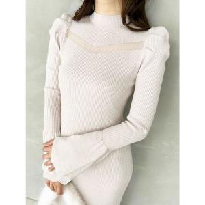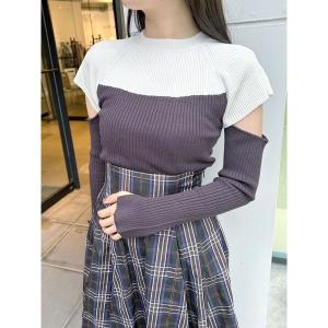 ワンピース 異素材ドッキングオフショルニットハーフスリーブワンピース