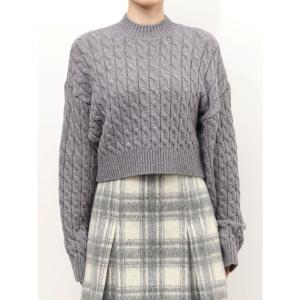 ニット セーター ショート丈ボトルネックケーブルニット レディース