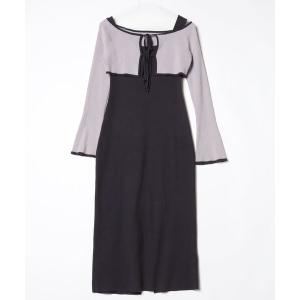 ワンピース 異素材ドッキングバックレースアップニットワンピース
