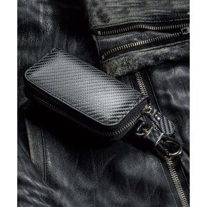 キーケース カーボンレザー 本革 6連 ファスナー付き キーケース