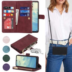 AQUOS sense 3 ケース sense3 lite ケース 肩掛け ショルダー マルチカード スロット ジッパー クロスボディ バッグ ストラップ sharp Android One S7 カバー