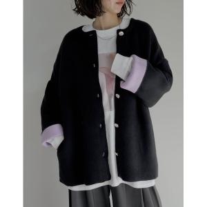 カーディガン バイカラー金釦起毛ニットコート レディース