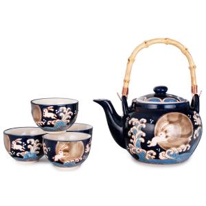 【並行輸入品】Happy Sales HSTS RABTMN 日本スタイル パーフェクト磁器ティーセット ティーポット ストレーナー付き 木製ハ