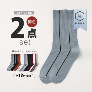 【メール便対応】 【2足セット】 リブソックス クルーソックス 靴下 メンズ 抗菌 防臭 速乾 吸水 ストレッチ 水色