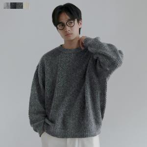 ニット 透かし編み メンズ 秋 秋服 冬 冬服 クルーネック 長袖 メランジ 杢 モヘアタッチ ルーズ ビッグシルエット ワイド オーバーサイズ 透け感 S M L LL XL