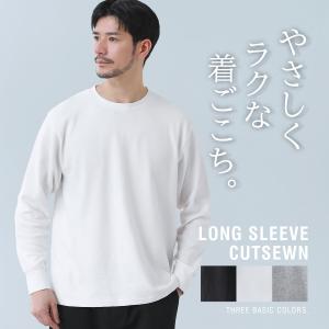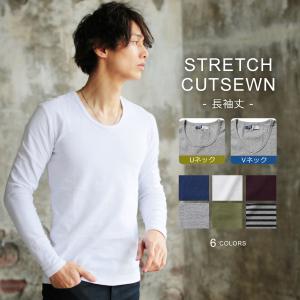 カットソー トップス Tシャツ インナー メンズ 春 春服 長袖 綿 コットン ストレッチ 伸縮性 クルーネック 無地