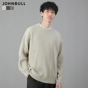 ニット トップス メンズ ワッフル オーバーダイ 綿100 長袖 クルーネック ドロップショルダー