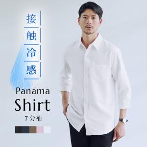 シャツ レギュラーカラーシャツ トップス メンズ 春 春服 夏 夏服 7分袖 接触冷感 パナマ 涼しい ストレッチ 伸縮 細身 キレイめ カジュアル 無地