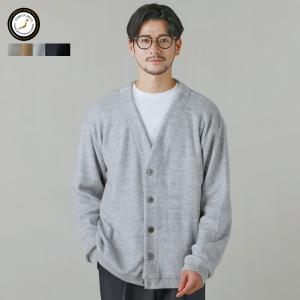 カーディガン ニット トップス メンズ 秋 冬 長袖 日本製 国産 ウール混 シャギー モヘアライク アクリル Vネック ネイビー AUD7288