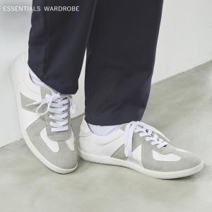 スニーカー ジャーマントレーナー メンズ 合成皮革 ローカット レースアップ シューズ ホワイト 通勤 通学 デイリーユース シンプル