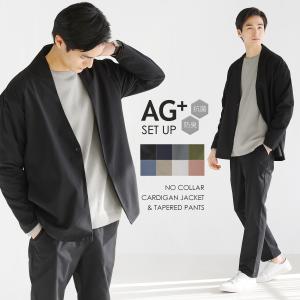 セットアップ メンズ 抗菌防臭加工 ノーカラージャケット イージーパンツ 上下セット 春服 夏服
