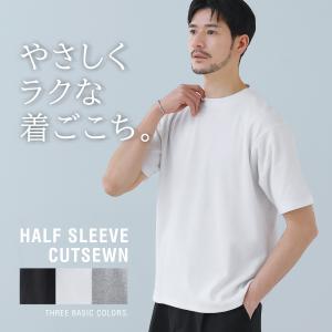 カットソー トップス Tシャツ インナー メンズ 春 春服 半袖 綿 コットン ストレッチ 伸縮性 クルーネック 無地
