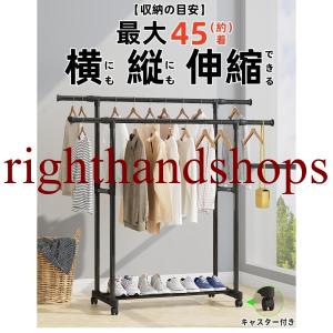ハンガーラック 頑丈 伸縮 パイプハンガーラック 衣類収納 洋服掛けラック 洋服収納 キャスター付き コートハンガー コンパクト収納 部屋干し 梅雨対策