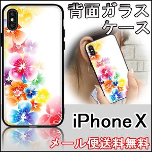docomo au SoftBank iPhoneX アイフォン テン ケース カバー 背面 ガラス TPU デザイン 1209 光と花 メール便送料無料