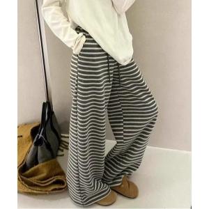 スウェットパンツ ジャージ WEGO/ボーダーワイドストレートスウェットパンツ レディース
