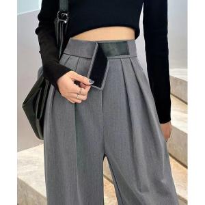 スラックス パンツ WEGO/ウエストテープタックワイドストレートスラックスパンツ レディース