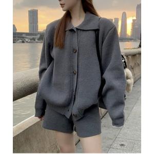 セットアップ WEGO/ハイゲージニットポロカーディガン&ショートパンツ2点セットアップ レディース