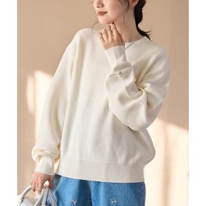 ニット セーター 「選べる6色展開 / 推しカラー」袖刺繍 スウェットライクハイゲージニット レディース