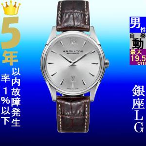 腕時計 メンズ ハミルトン オートマチック ケース幅45mm ジャズマスター スリム 革ベルト シルバー/シルバー/ブラウン色 HAMILTON 161938615555