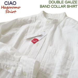 CIAO/羽衣シャツ 【ダブルガーゼバンドカラーシャツ】 日本製/ノーカラーシャツ/スタンドカラーシャツ 237-03 10)ホワイト