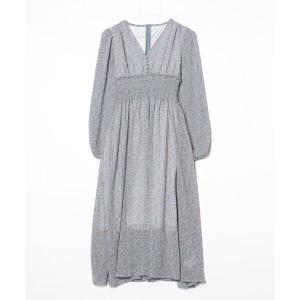 ワンピース 水彩フラワー柄シャーリングワンピース