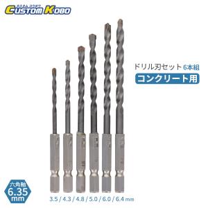CUSTOM KOBO コンクリート用 ドリル刃セット 6本組 六角軸6.35mm 3.5mm〜6.4mm ドリルビット 電動ドリル インパクト対応 穴あけ ブロック 先端工具 CCC-603