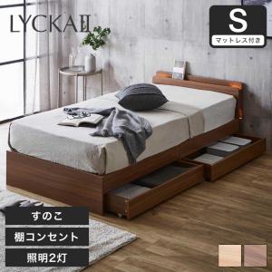 4/6 8:59まで最大10%OFF! LYCKA2 リュカ2 すのこベッド シングル ポケットコイルマットレス付き 木製ベッド 引出し付き 照明付き