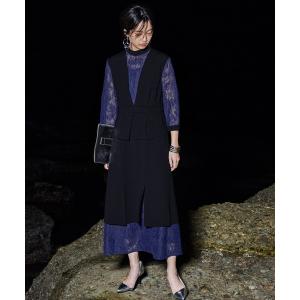 ドレス 「Callarus」スタンドカラーレース切替デザインワンピースドレス