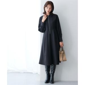 ワンピース 「あったか裏起毛」襟付きフロントジップタックワンピース(しわになりにくい・ストレッチ)「大きいサイズ有」