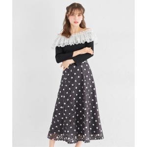 フラワーレースドットプリントフレアスカート tocco closet(トッコクローゼット)