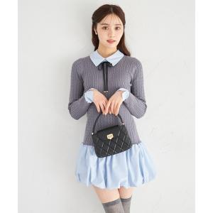 ワンピース リボン付きケーブルニットドッキングシャツワンピース