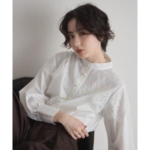 ブラウス シャツ レースケープカラーパール釦シャツ レディース