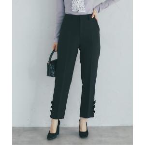 ジーンズ デニム デニムパンツ 裾パール&ベロアリボン付きテーパードパンツ レディース