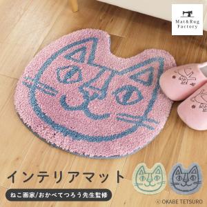 インテリアマット チェアパッド チェアマット 洗える おかべてつろう ねこ 猫 おしゃれ かわいい ダイニング 椅子 マルチマット オフィス ダイカット オカ