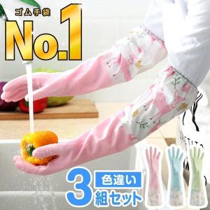 3.ゴム手袋ロング3枚セットかわいい おしゃれ 作業用ロンググローブ食器洗い キッチン掃除 トイレ掃除浴室掃除クリーニング 掃除レディース そうじ